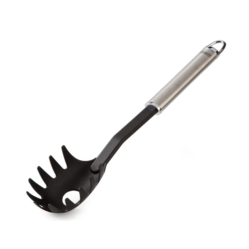 ทัพพีตักสปาเก็ตตี้ทำจากไนลอนสีดำและด้ามจับทำจากสเตนเลสเกรด 18/8